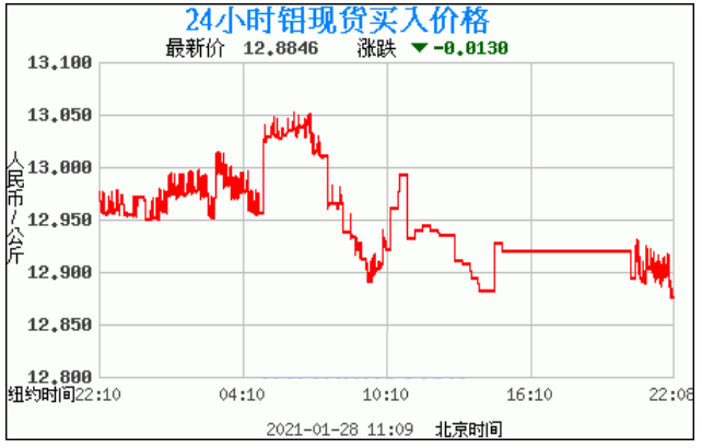 今日最新铝锭行情:12.8846