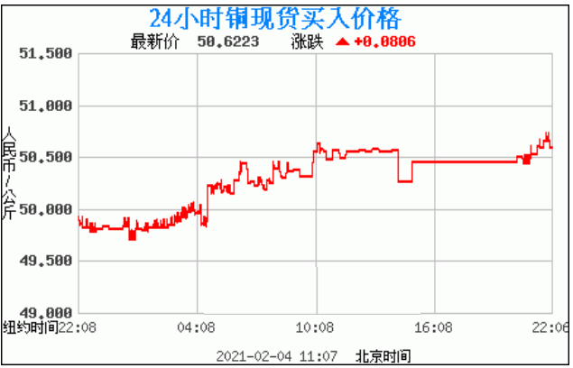 今日最新铜价:50.6223 涨跌:0.0806