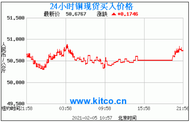 今日最新铜价:50.6767 涨跌:0.1746