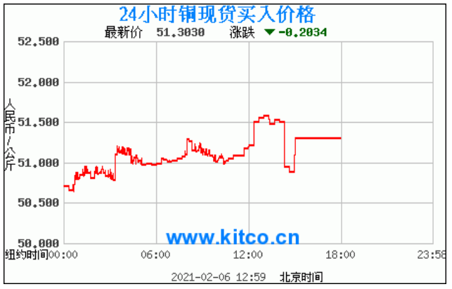 今日最新铜价:51.3030 涨跌:-0.2034