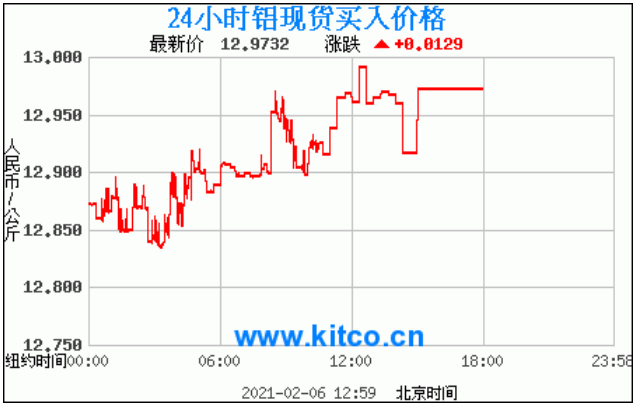 今日最新铝锭行情:12.9732