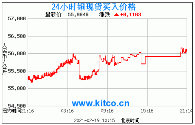 今日最新铜价:55.9646 涨跌:0.1163
