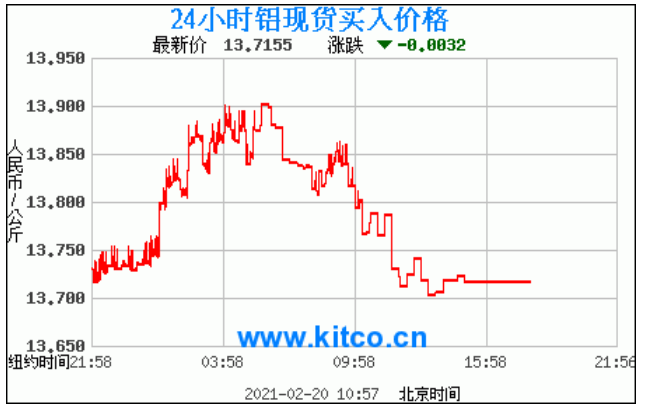 今日最新铝锭行情:13.7155