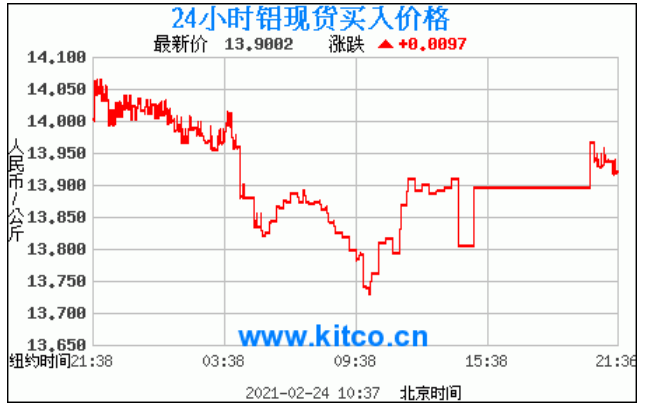 今日最新铝锭行情:13.9002