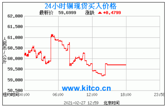 今日最新铜价:59.6999 涨跌:0.4799