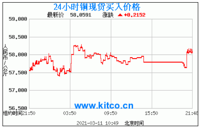 今日最新铜价:58.0591 涨跌:0.2151