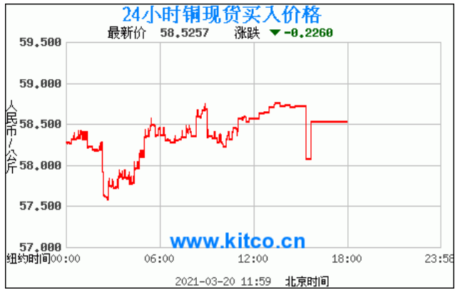 今日最新铜价:58.5257 涨跌:-0.2260