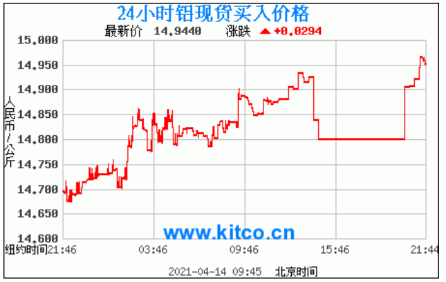 铝锭价格走势图 今日最新铝锭行情(2021年4月14日)