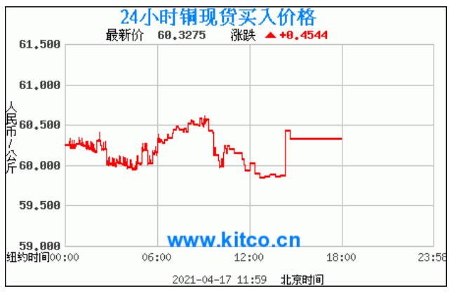 今日最新铜价:60.3275 涨跌:0.4544