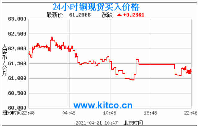 今日最新铜价:61.2066 涨跌:0.2661