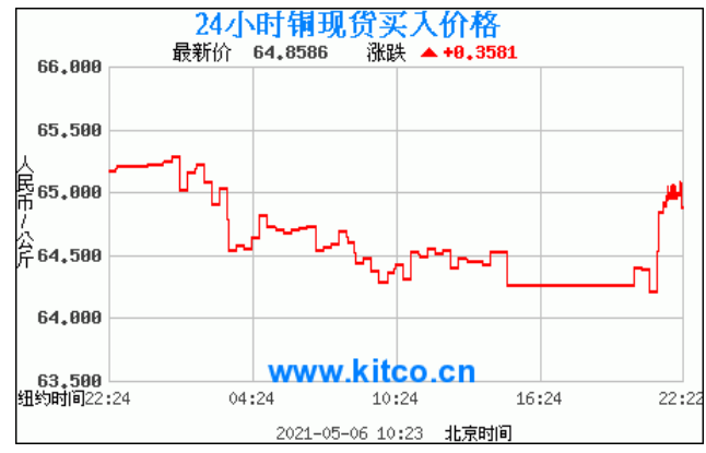 今日最新铜价:64.8586 涨跌:0.3581