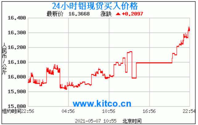 今日最新铝锭行情:16.3668