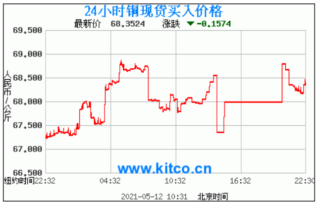 今日最新铜价:68.3524 涨跌:-0.1574