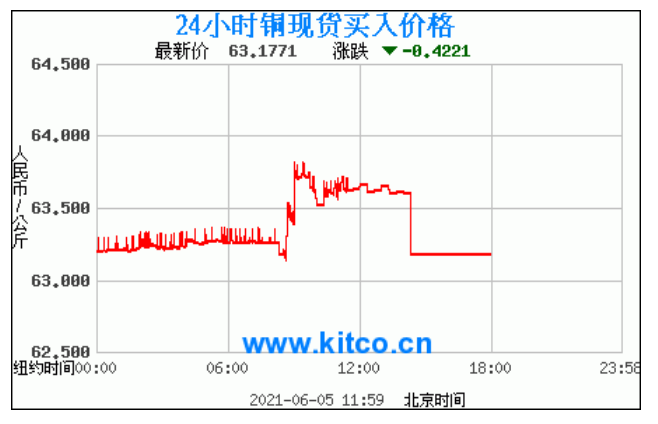 今日最新铜价:63.1771 涨跌:-0.4221