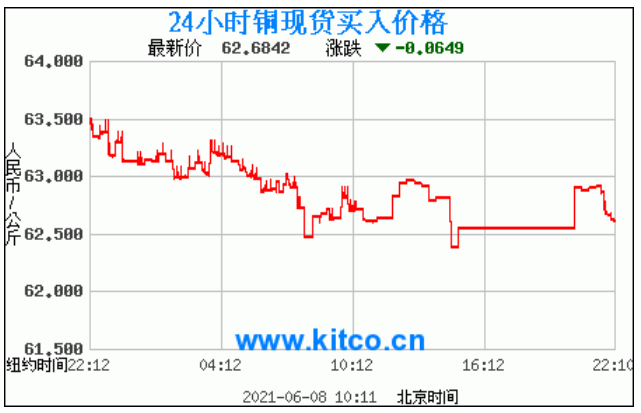 今日最新铜价:62.6842 涨跌:-0.0649