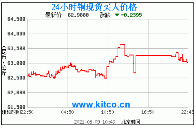 今日最新铜价:62.9880 涨跌:-0.2395