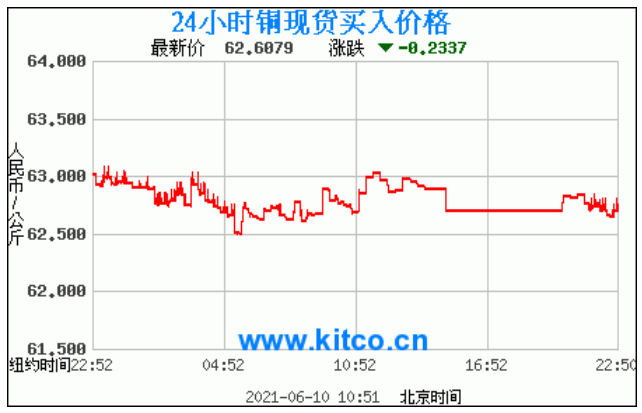 今日最新铜价:62.6079 涨跌:-0.2337