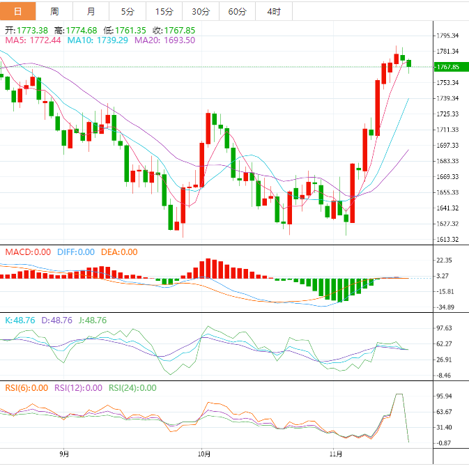 今天的预期交易区间在1746.00支撑位和1780.00阻力位之间。