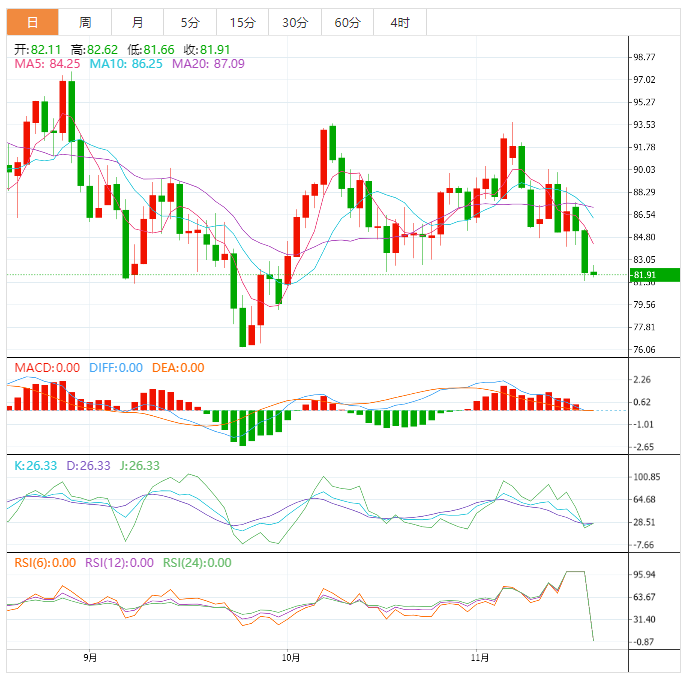 今天的预期交易区间在支撑位80.00和阻力位83.70之间。