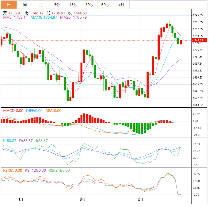 今天的预期交易区间在1720.00的支撑位和1760.00的阻力位之间。