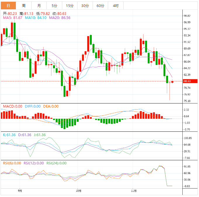 今天的预期交易区间在78.90支撑位和82.45阻力位之间。
