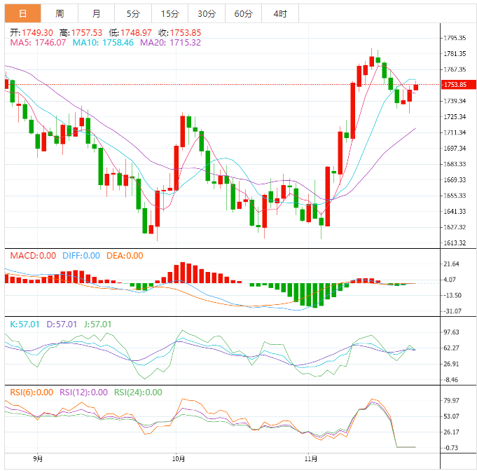 今天的预期交易区间在1740.00支撑位和1775.00阻力位之间。