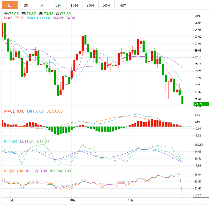 今天的预期交易区间在72.00支撑位和75.70阻力位之间。