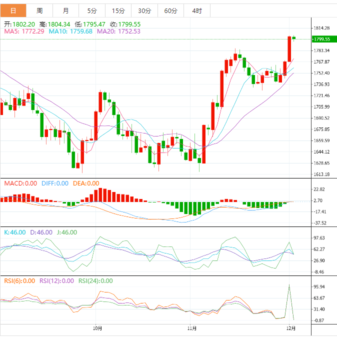 今天的预期交易区间在1780.00支撑位和1825.00阻力位之间。