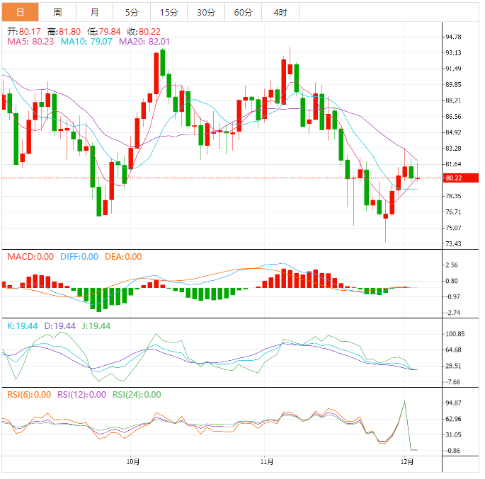 今天的预期交易区间在79.50支撑位和83.00阻力位之间。