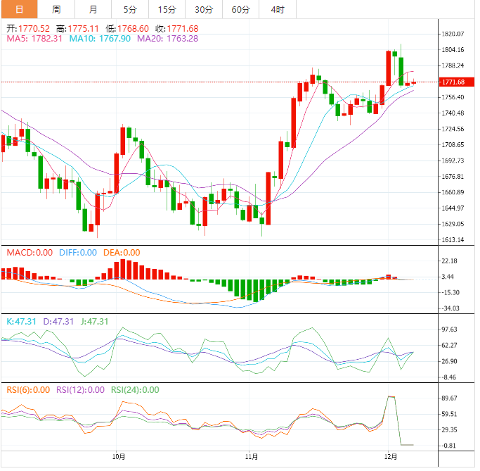 今天的预期交易区间位于1760.00支撑位和1795.00阻力位之间。