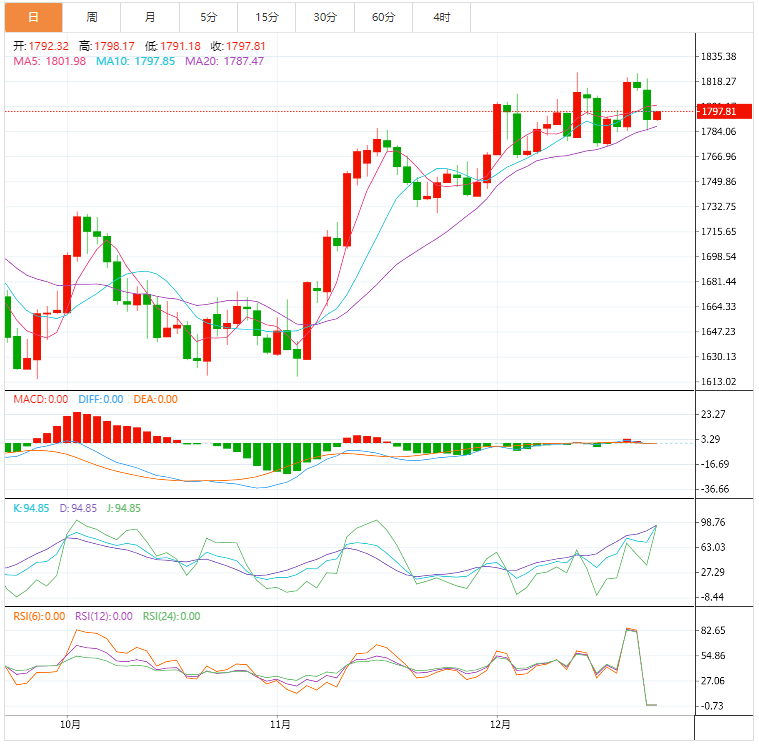 今天的预期交易区间在1775.00支撑位和1810.00阻力位之间。