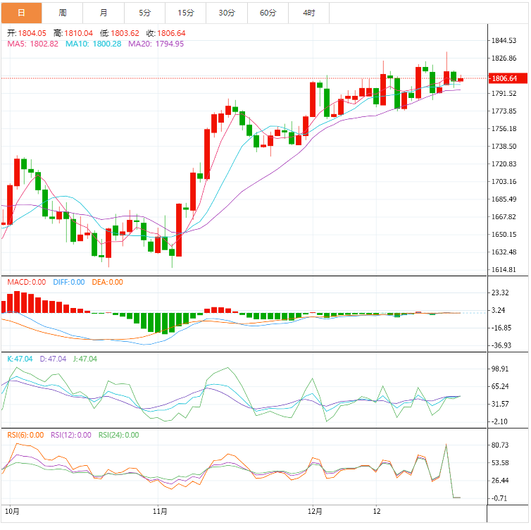 今天的预期交易区间位于1795.00支撑位和1830.00阻力位之间。