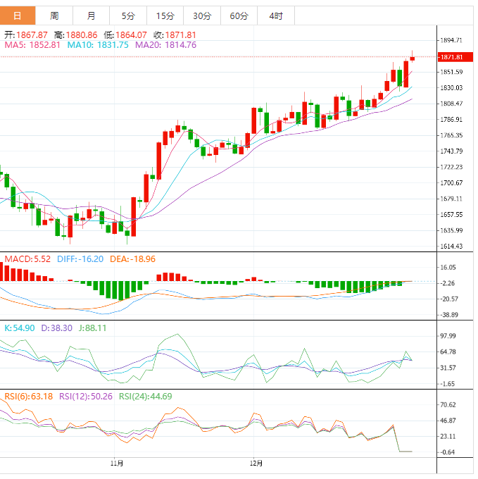 今天的预期交易区间在1860.00支撑位和1900.00阻力位之间。