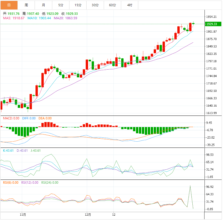 今天的预期交易区间在1915.00支撑位和1950.00阻力位之间。
