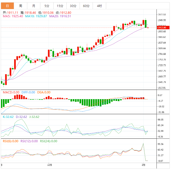 今天的预期交易区间在1890.00支撑位和1930.00阻力位之间。