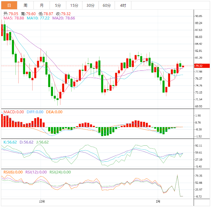今天的预期交易区间在77.90支撑位和81.00阻力位之间。