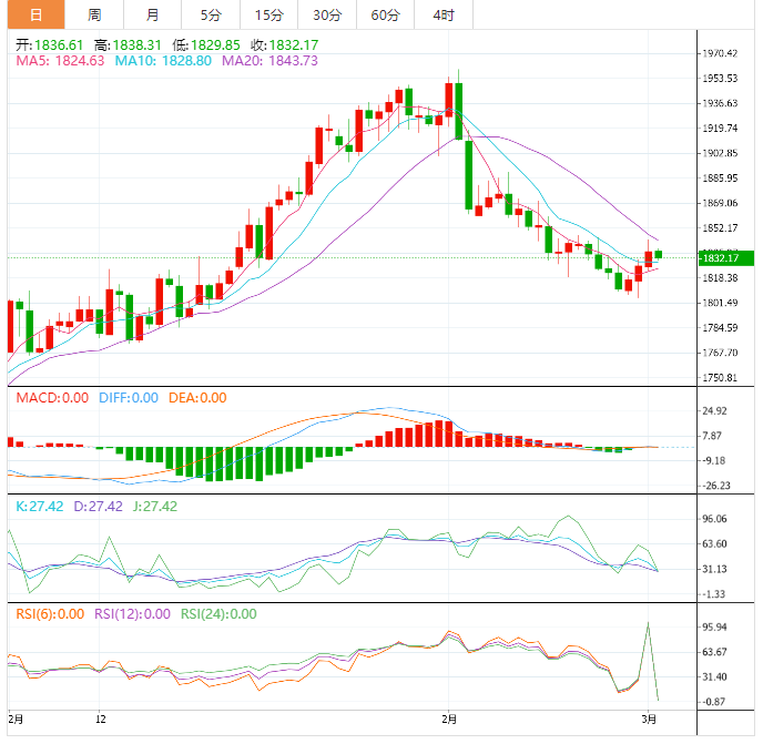 今天的预期交易区间在1815.00支撑位和1850.00阻力位之间。