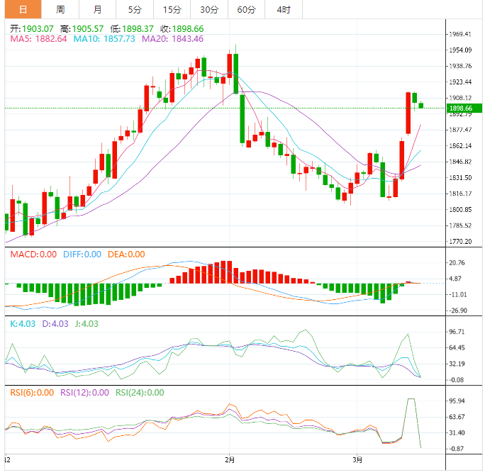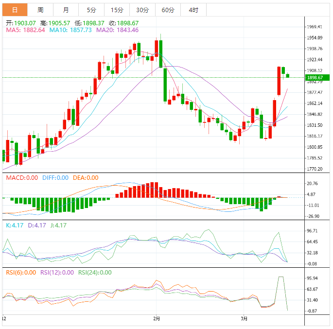 今天的预期交易区间在1890.00支撑位和1928.00阻力位之间。