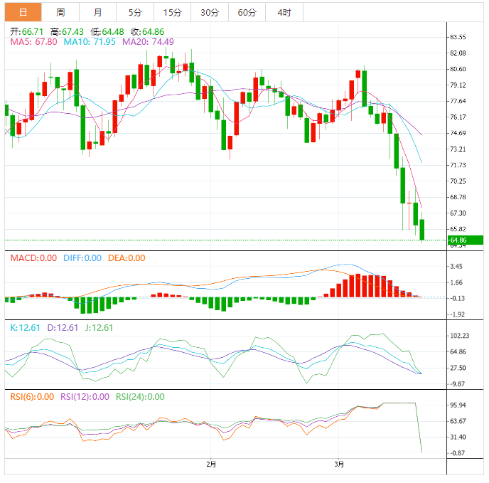 美原油先涨后跌,虽然周末瑞银集团达成了收购瑞士信贷的协议,而且美联储等六大央行联合行动,增强流动性,以安抚和稳定全球金融市场,美原油一度反弹逾1%至67.43美元/桶,但担忧情绪很快再度回升,而且美国仍有未解决的银行问题,市场担忧银行业危机会发展成全球金融海啸,进而拖累原油的需求,美原油很快回吐涨幅并延续上周的跌势,目前下跌逾2.5%,最低触及64.84美元/桶,为2021年12月2日以来新低。
