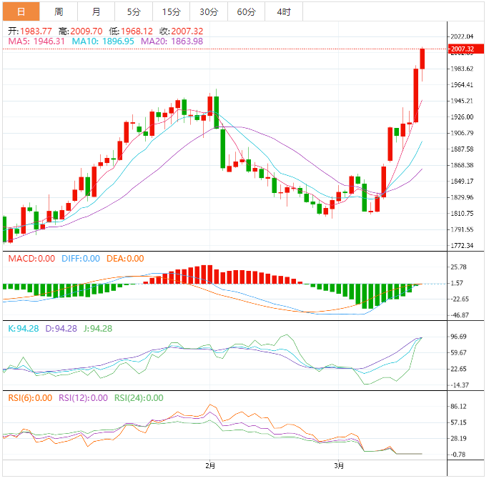 今天的预期交易区间在1960.00支撑位和2000.00阻力位之间。