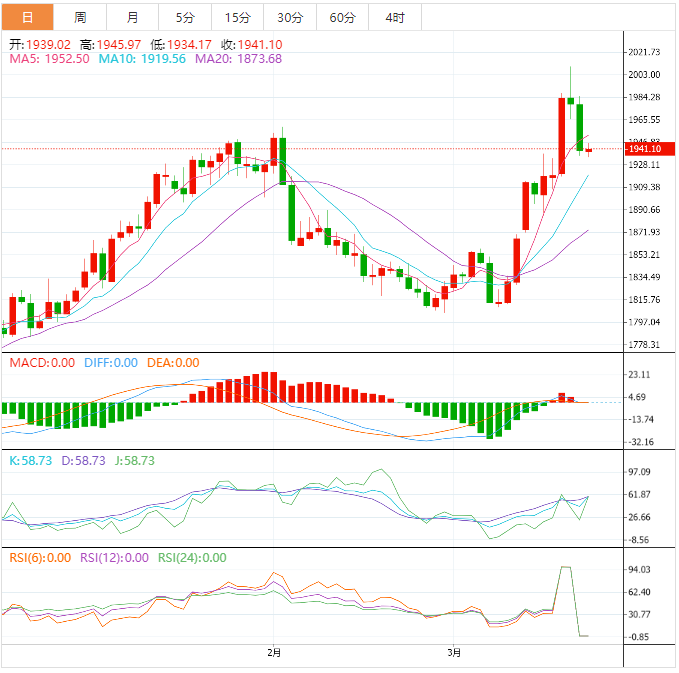 今天的预期交易区间在1920.00支撑位和1965.00阻力位之间。