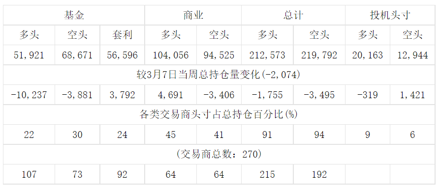 美国商品期货交易委员会(CFTC)最新公布截止3月14日当周COMEX铜期货和期权分类持仓报告:
