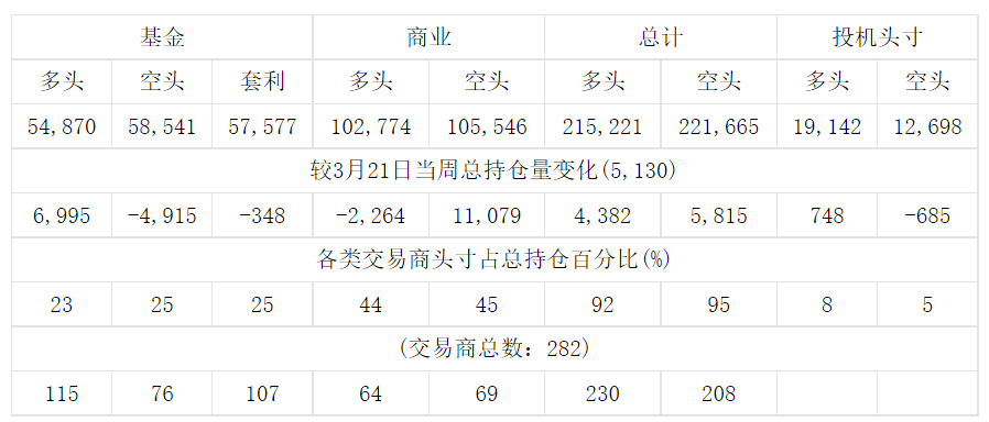 美国商品期货交易委员会(CFTC)最新公布截止3月28日当周COMEX铜期货和期权分类持仓报告: