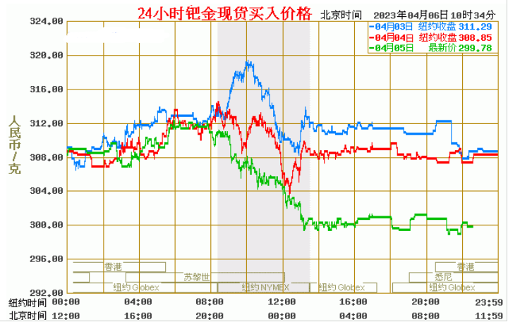 今日最新钯金行情:299.78