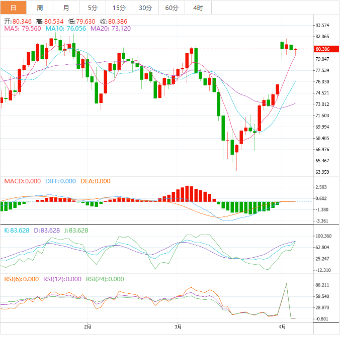 今天的预期交易区间在78.50支撑位和82.00阻力位之间。