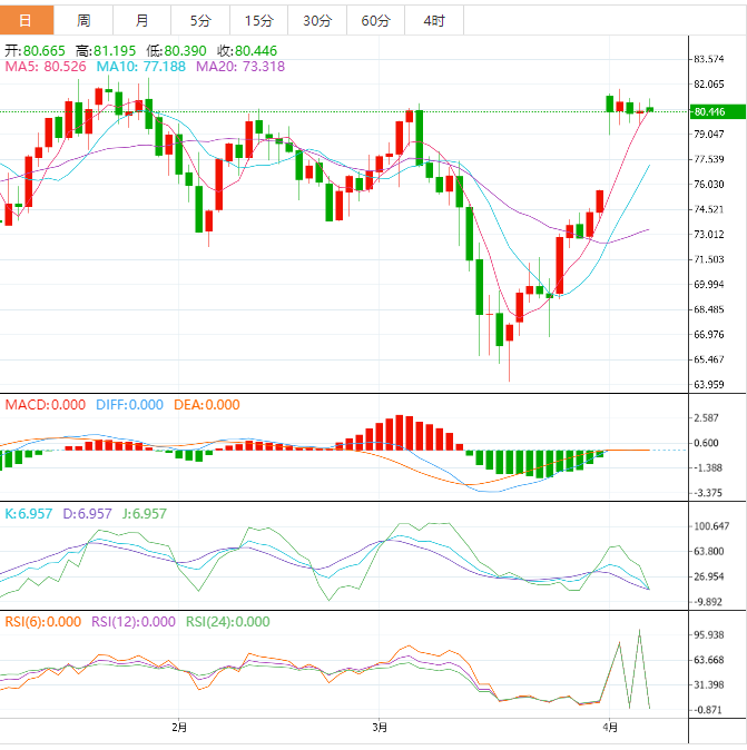 今天的预期交易区间位于79.50支撑位和83.00阻力位之间。