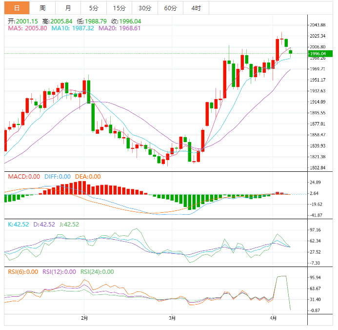 今天的预期交易区间在1990.00支撑位和2020.00阻力位之间。