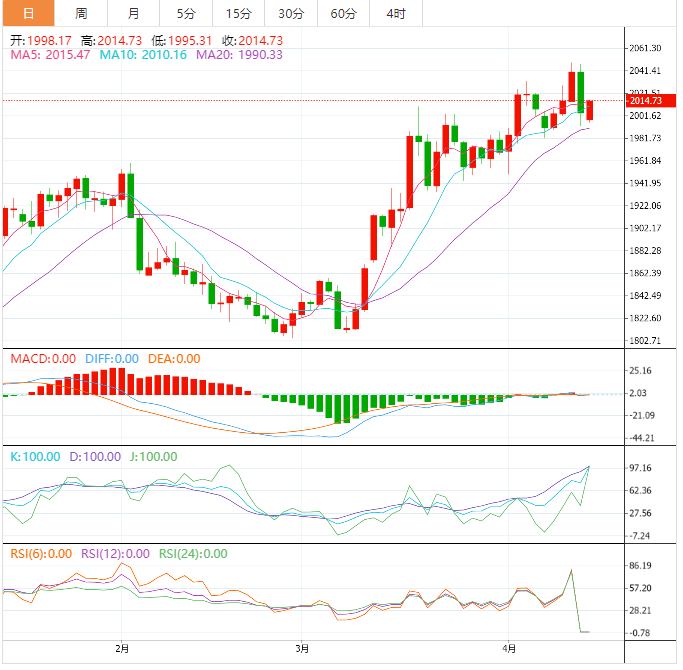 今天的预期交易区间在1980.00支撑位和2015.00阻力位之间。