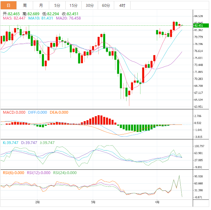 今天的预期交易区间在81.00支撑位和84.00阻力位之间。