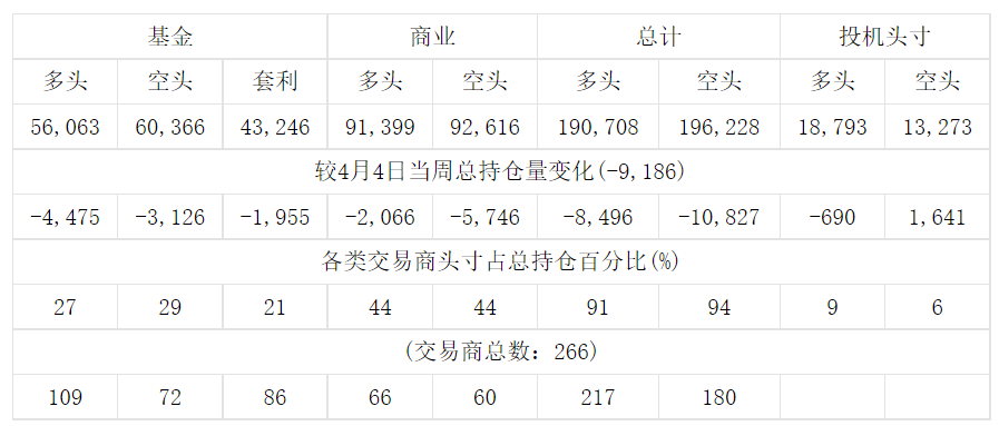 美国商品期货交易委员会(CFTC)最新公布截止4月11日当周COMEX铜期货分类持仓报告: